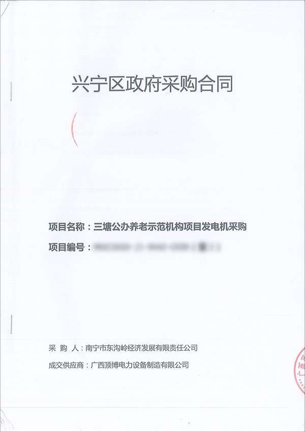 100KW柴油發電機組采購合同,據了解,該臺機組將作為應急備用電源用于三塘公辦養老示范機構項目。